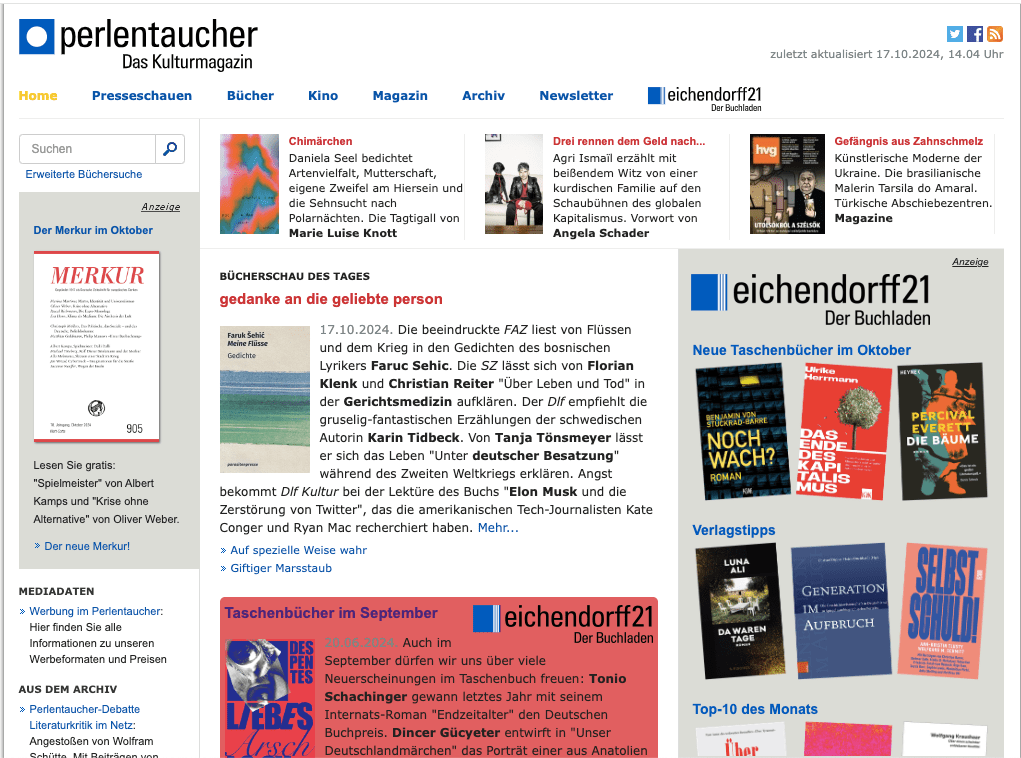 “Schwermütige und doch überraschende Gedichte findet Rezensent Jörg Plath im neuen Gedichtband des Bosniers Faruk Sehic: Um Flüsse geht es, aber nicht unbedingt im naturnahen Sinne, sondern um ihre Bedeutung für Kriege. Sehic ist Überlebender des Bosnienkrieges. An der Una und an der Drina wurde gekämpft, sie fließen “schnell wie ein gedanke an die geliebte person” und sind doch ‘Wassergrüfte für Menschen und Schiffe’, heißt es. Zwischen Melancholie und Schockwirkung schwanken die Poeme, die auch von Plastikhalteschlaufen erzählen, die in U-Bahnen zum Festhalten dienen, ‘wie Schlingen’ von der Decke hängen, bereit, jemanden aufzuhängen, schreibt der beeindruckte Rezensent”, stoji u opisu recenzije iz FAZ-a, koja je najavljena na naslovnici najbitnijeg njemačkog newsletter magazina za kulturu Perlentaucher.