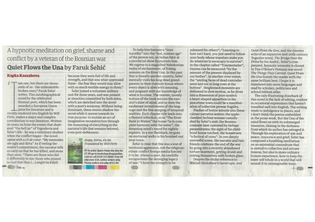 Cijeli tekst je dostupan na fotografiji ispod, kao i na linku: Quiet Flows the Una by Faruk Šehić review – ‘a major contribution to war literature’.