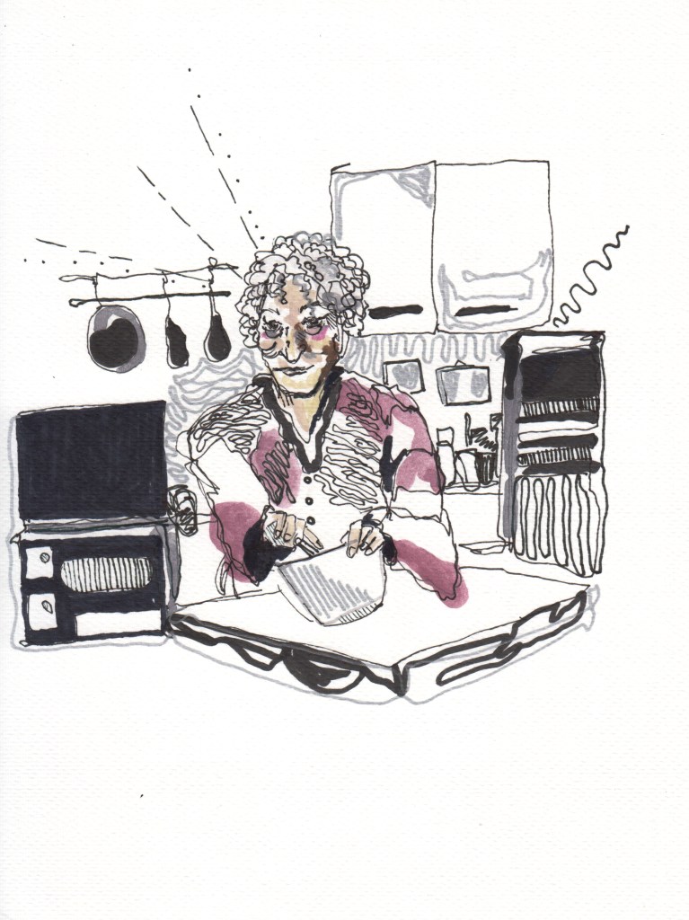 Suada, naša mati, centar je oko kojeg kruže sve stvari i sva živa bića u našoj kući. Tu su, pored Grete & Nađe, jedan mali mačak, pas (Konjić Grbonjić) komada jedan, koji je preživio štenećak i pomalo se trese dok hoda. Otac i ja smo samo fakultativni članovi našeg izbjegličkog portreta, jer smo vrlo rijetko u kući.
