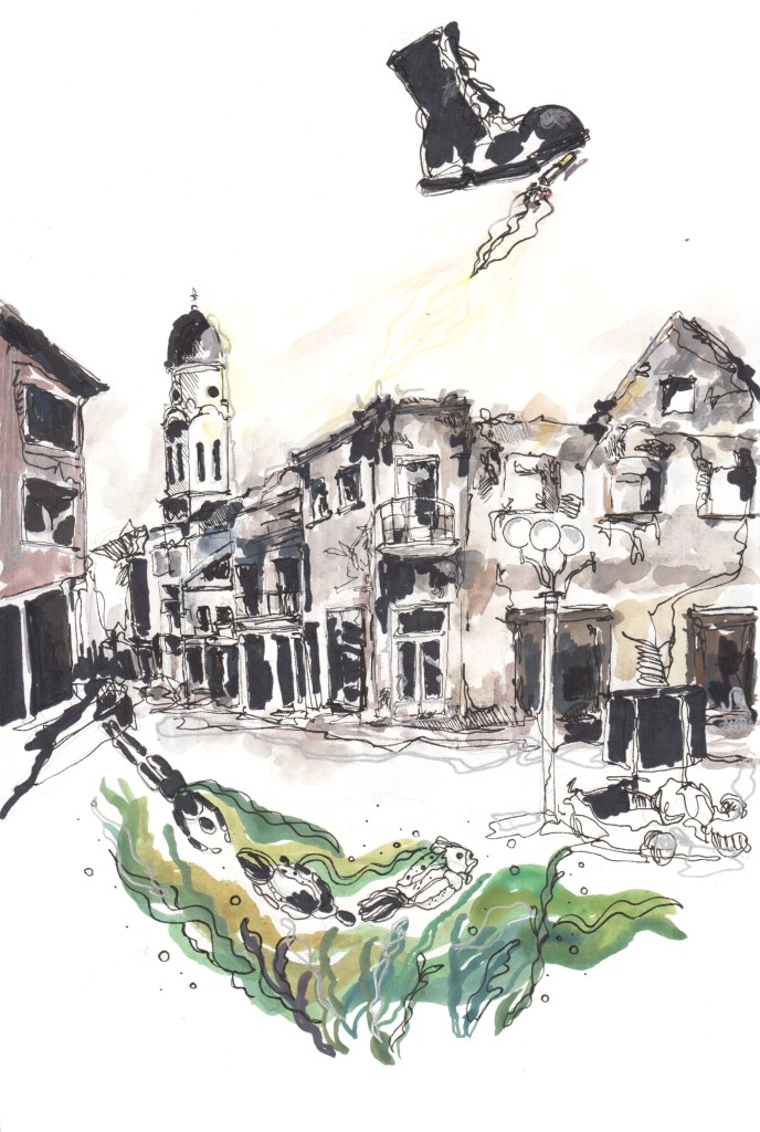 Suada looks after the house and all the living beings in and around it. The little tom is becoming less and less little. At some point I can no longer remember what happens to him, he vanishes into a mysterious feline land, far from the radio reports, far from the laundry soap with which we wash our hair, far from the bath tub mounted on four bricks, far from the cold tiles of the toilet in which I often see my face, distorted with weed and alcohol because it cannot be otherwise. It is the same bathtub in which Mum washed the shot-through blood-encrusted camo vest I strutted about in during nocturnal piss-ups, flaunting my spoils. I’d stripped a dead Autonomist, as if I was about to wash him and wrap him in a white shroud for funeral. But he remained lying on the melting crust of snow on a slope overgrown with stunted conifer. Almost naked, in his pants and boots with socks showing. He lay there for a few days before somebody thought we should bury him, then dig him up again to swap him for victuals. For we were made by nature, and to nature we shall return, naked like the day we were born.